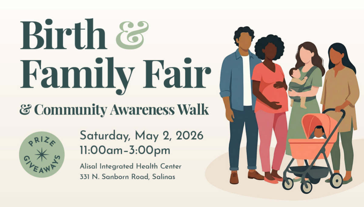 Saturday, May 2 from 11:00am – 3:00pm Alisal Integrated Health Center331 N Sanborn Road, Salinas Learn about resources in our community for pregnancy, birth, postpartum and the parenting journey. Learn more >>